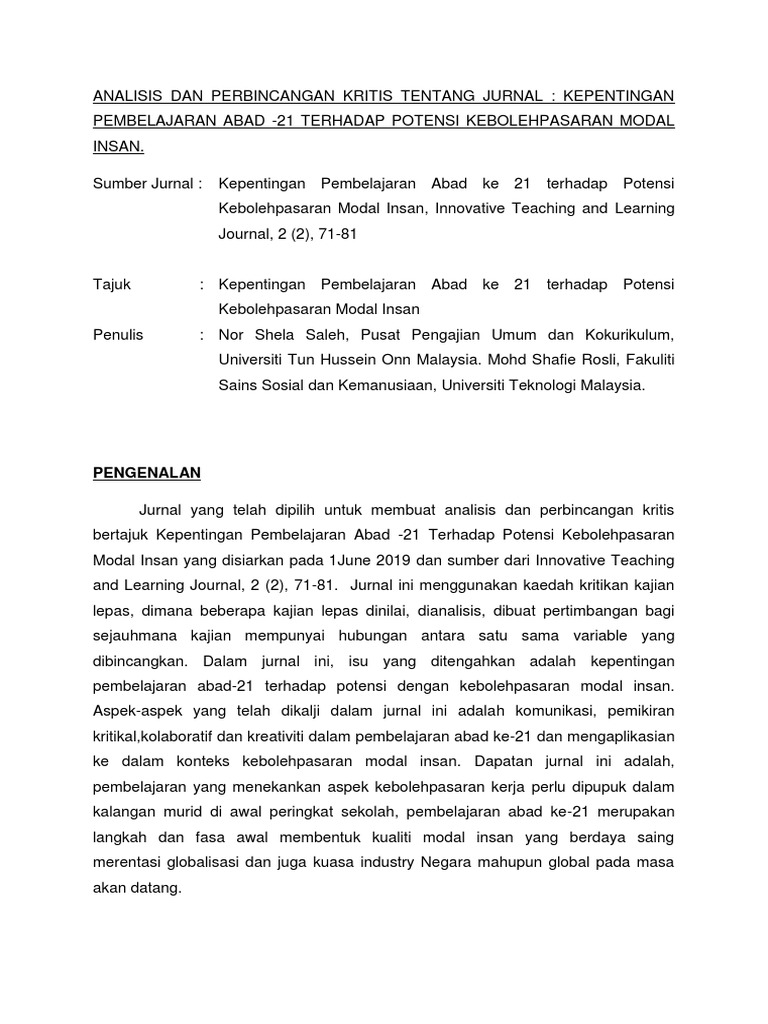 Jurnal Pembelajaran Abad Ke 21 : Hamdan, said dan nasrudin, talib (2000).. Pembelajaran abad 21 adalah pembelajaran yang dirancang untuk generasi abad 21 agar mampu mengikuti arus perkembangan teknologi terbaru. Kemahiran pengajaran dan pembelajaran (pdp) abad 21 merujuk kepada beberapa kompetensi teras, iaitu kolaboratif, celik digital, kemahiran berfikir dan penyelesaian masalah. Tantangan indonesia dalam abad ke21 (mengapa kita harus siap berubah?). Jurnal penjaminan mutu, lembaga penjaminan mutu, institut hindu dharma negeri denpasar. Memahami cadangan daripada guru bagi mengatasi cabaran yang mereka hadapi.