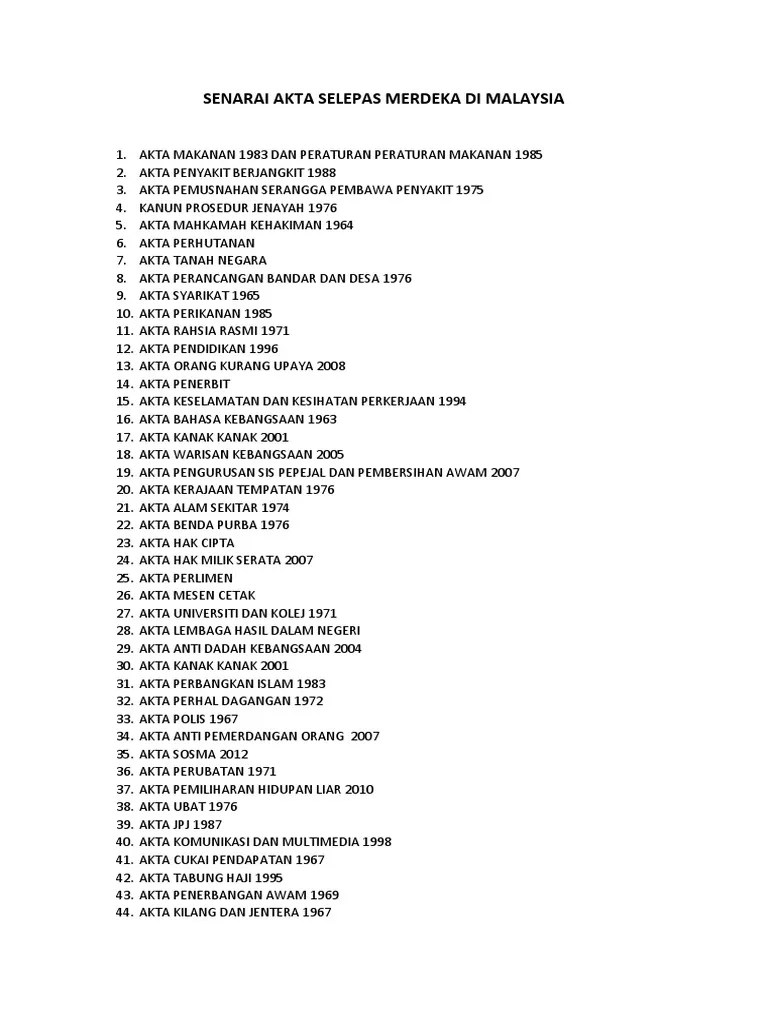 Senarai Akta Di Malaysia / Sebagai seorang pelajar sekolah, maklumat ini sangat penting.