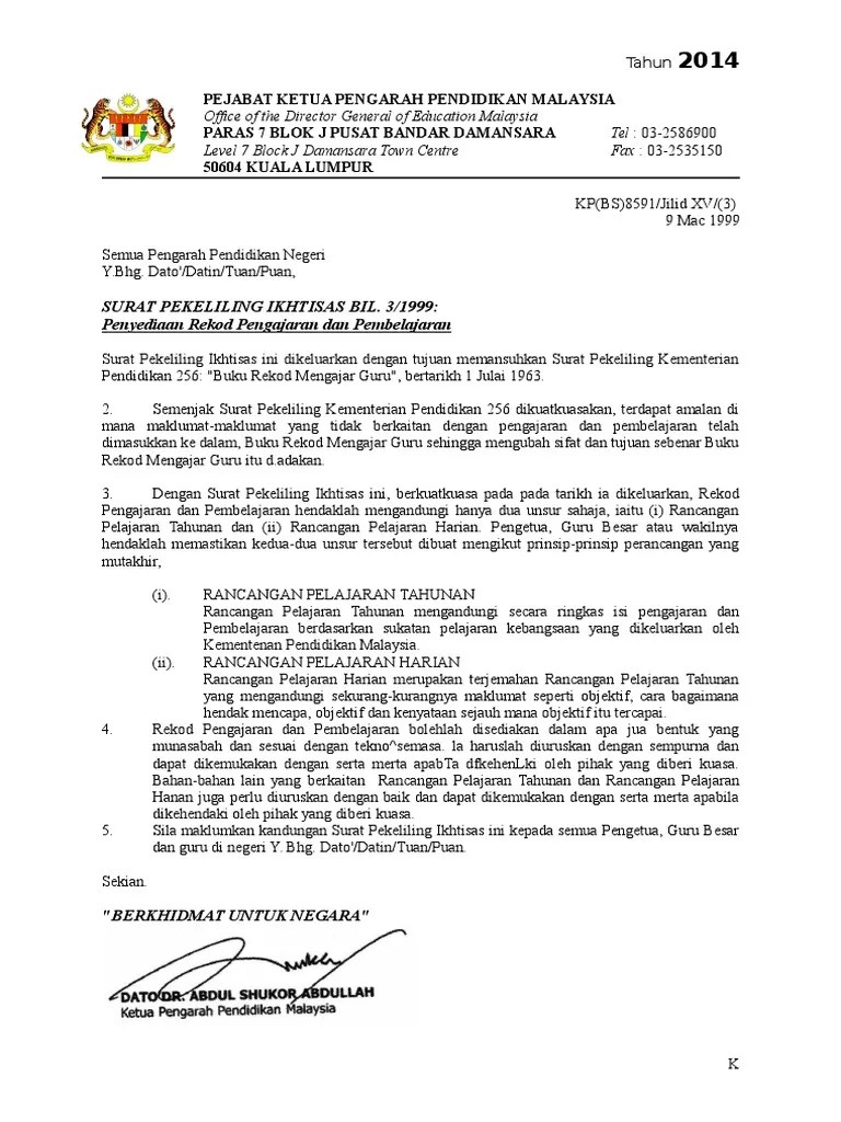 Please fill this form, we will try to respond as soon as possible. Dato'/datin/tuan/puan, surat pekeliling ikhtisas bil. Report surat pekeliling ikhtisas bil 3/1987. Merely said, the surat pekeliling ikhtisas bil 3 1999 penyediaan rekod is universally compatible with any devices to read. Penyelarasan waktu mengajar guru penyelaras bestari dan guru perpustakaan dan media.